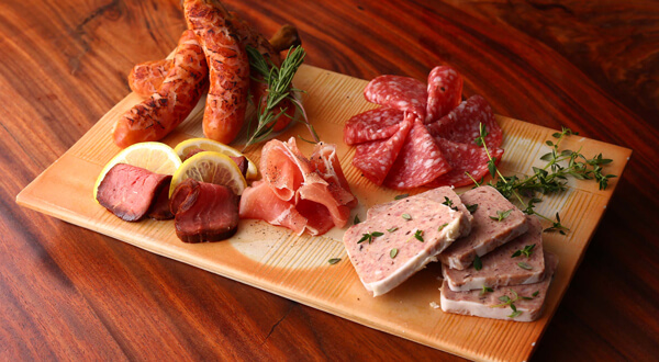 鮮魚のお店なのに!?朝採れ鮮魚メニューにも負けない大人気のメニュー!!味も見た目も◎のお肉盛り合わせ「Chair=肉」、「Cuit=火を通した」という2つの言葉が語源となっています。